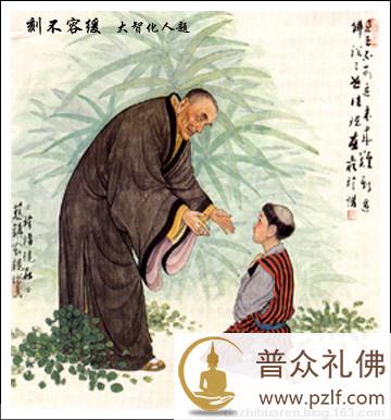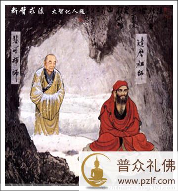 禅宗二祖慧可禅师,青年时为人豁达豪爽,博览群书,因不满足于儒道易数,四处访贤求道。听说有位天竺来的神僧达摩住在少林寺,便前往拜访。慧可虽时时伺机参问,但达摩时常面壁禅坐,并不向其开示。慧可只好守候在洞外。深冬季节,一日,天降大雪,慧可仍然挺立在洞外风雪之中。达摩祖师问道: “你因何事,久立不去?” 慧可眼里含着泪水说:“只求和尚为我开示无上妙法。” 达摩见多了那些谈玄猎奇,无志实修的知解之徒,对他淡淡地说: “如来无上妙道,非同世俗学问,需要具备能行难行、能忍难忍的毅力,以及坚持不懈、百折不回的恒心,方可学修。贪图小智,无德无义,谄曲轻慢者,不能受持。”怎料,慧可竟然以刀自断左臂,并置于达摩祖师面前,以表决心。 慧可这些坚定求法的举动最终得到了达摩祖师的认可,并赐法名“慧可”。此后,慧可跟随达摩祖师,朝夕参学修行,长达九年,终于得其心要,继承衣法。临别时,达摩祖师说: “二百年后,此如来禅法将在中华国广泛传播,虽然说理者多,通理者少,明道者多,行道者少,但自参自悟,潜行密证者仍然成千上万,不可胜数。”