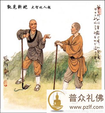 有一位讲经僧来参访智常禅师,禅师正在田间锄草。忽然草中窜出一条蛇来,禅师举起锄头便砍。讲经僧不以为然地说道:“久仰禅师道风,今天一见,原来是个粗行沙门。” 智常禅师道:“像你这么说,究竟是你粗,还是我粗?” 讲经僧于是展开辩论,问道:“什么是粗?” 禅师放下锄头。 讲经僧又问:“什么是细?” 禅师举起锄头,作斩蛇的姿势。 讲经僧不明白智常禅师的意思,又问道:“你根据什么道理这样做呢?” 禅师道:“凭什么,且不说。请问你什么地方看见我斩蛇了?” 讲经僧理直气壮地答道:“当下!” 智常禅师以训诫的口气对这位讲经僧说:“你当下见不到自己,却来见到斩蛇做什么?” 讲经僧终于有省。