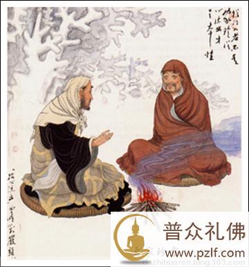 有一位云水僧一路参访,一日来到由一位老妇人管理的庵堂前休息。他问老妇人:“师姑,这座庵堂里除你之外,还有其他的眷属吗?” 老婆婆:“有。” 云水僧:“怎么没有看到呢?” 老婆婆:“喏!山河大地,若草若木,都是我的眷属呀!” 云水僧:“无情不是有情,那些山河草木何曾是师姑的样子?” 老婆婆:“那你看我是甚么样子?” 云水僧:“俗人。” 老婆婆:“你也不是出家人。” 云水僧:“师姑,你可不能混淆佛法。” 老婆婆:“我并没有混淆佛法呀!” 云水僧:“俗人主持庵堂,草木皆成道友,你这样不是在混淆佛法,是什么?” 老婆婆:“法师!你不可那么说,要知道你是男人,我是女人,何曾混淆?”