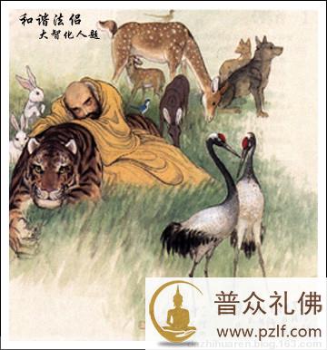 宋朝时,惟则禅师在浙江天台山修行。他自己搭建了草庵,以山中野果充饥,常年独居在山中。一天,一个樵夫路过庵边,见到惟则禅师,好奇地问道:“你在此住多久了?” 惟则禅师回答道:“大概已易四十寒暑。” 樵夫又问:“你一个人在此修行吗?” 惟则禅师点头道:“丛林深山,一个人在此都已嫌多,还要多人何为?” 樵夫:“你没有朋友吗?” 惟则禅师拍掌作声,只见好多虎豹鸟兽由庵后出来。樵夫大惊,惟则禅师又示意虎豹退回庵后,说道: “朋友很多,大地山河,树木花草,虫蛇野兽,都是法侣。” 樵夫非常敬佩,自愿皈依作为弟子。