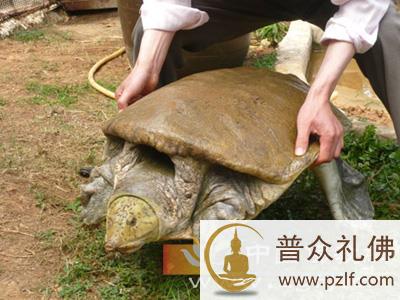 孔雀鳖体型巨大,工作人员要费大力气才抬得起来