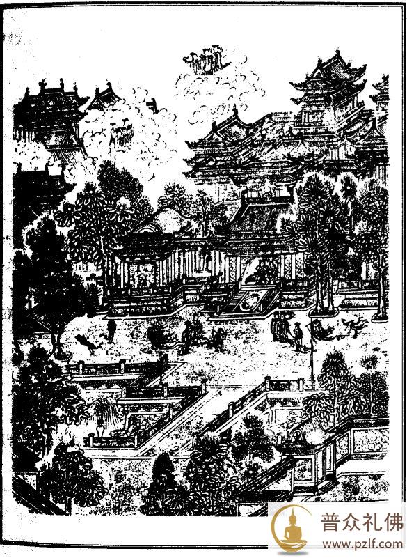 善财童子渐渐向南行去,至海潮处,他才见到这座普庄严园,依报①庄严,宛似西方极乐世界: